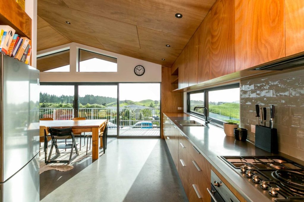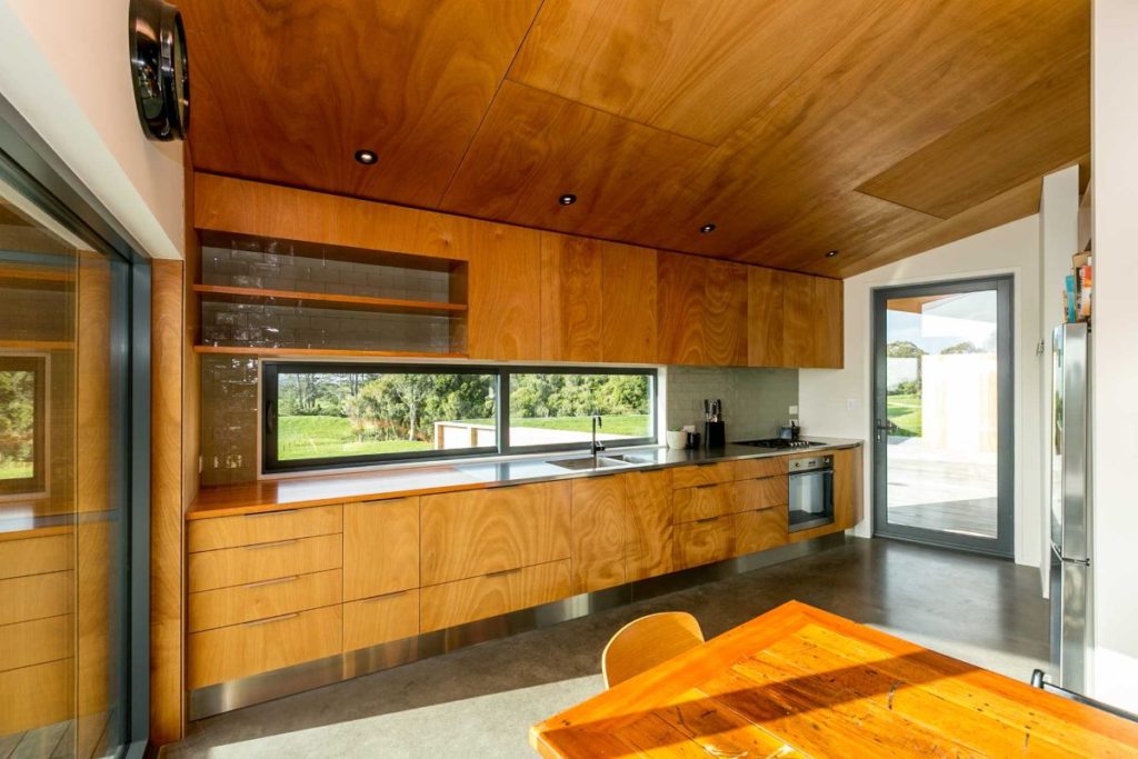 The house has two living areas and a designer kitchen that blends in with the rest of the open-plan living.